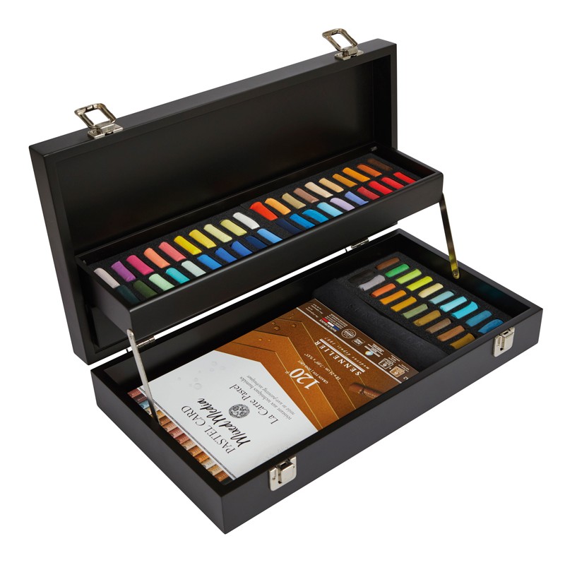 Ce coffret offre 60 pastels à l’écu extra-tendres, conçus à partir de pigments purs pour des couleurs éclatantes et résistantes à la lumière. Leur texture veloutée permet des mélanges et applications parfaits, idéals pour des nuances riches et des ombres délicates. Inclus, un bloc Pastel Card Mix Média, nouveauté de chez Sennelier, spécialement conçu pour optimiser l’adhérence des pastels, mais aussi pour diversifier l'option des pastellistes en leur offrant la possibilité de méler plusieurs techniques au pastel, comme l'acrylique, la gouache, l'aquarelle...