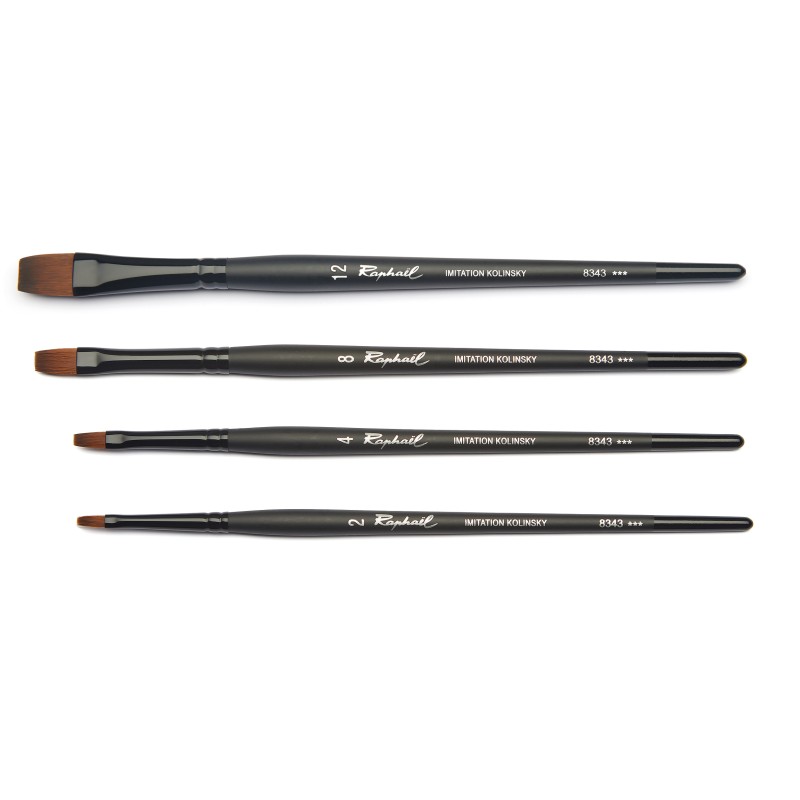 Le pinceau plat Stradivarius n°8343 est fabriqué à partir d'une fibre synthétique qui imite à la prefection le poils de martre de Kolinsky. Le pinceau Stradivarius plat est idéal pour l'execution des fonds et des aplats à l'aquarelle, à l'encre ou avec toutes techniques fluides.