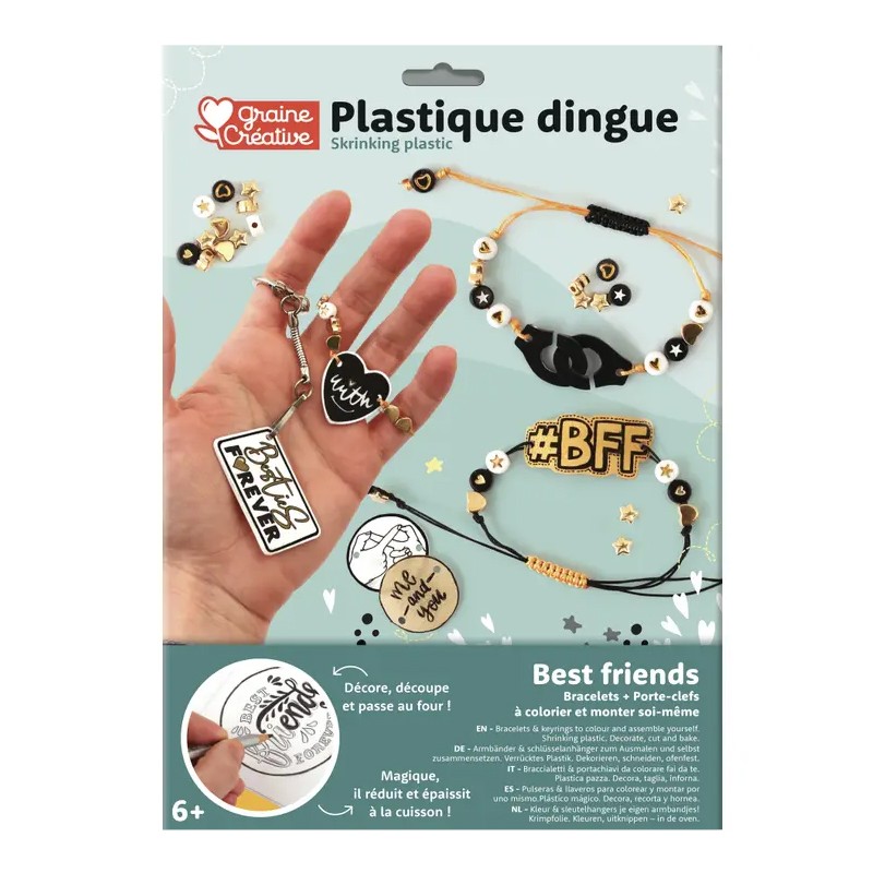 Ce kit Plastique dingue "Best Friends" de Graine Créative et l'activité à faire avec son ou sa meilleur(e) ami(e) ! Il inclut le matériel nécessaire à la création de bracelets et prote-clé sur le thème de l'amitié. A partir de 6 ans, il inclus une notice claire et des modèles à reproduire pour des heures d'activités ludiques.