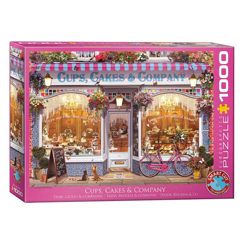 Puzzle Smart Cut de 1000 pièces sur le thème "Tasse, gâteau et compagnie" de Garry Walton, format fini 48x68 cm. Pour des heures de détente, amusez-vous à recréer pièce par pièce cetteillustration gourmande. Ce puzzle de 1000 pièces de haute qualité a été découpé en utilisant la technologie Smart Cut, ce qui rend les pièces uniques et originales.