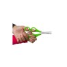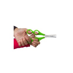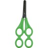 Ciseaux pédagogiques à bouts ronds et 4 anneaux parfaitement symétriques pour apprendre aux enfants la bonne tenue des ciseaux et faciliter les premières découpes. Manche en plastique vert et lames en inox à bout rond de 13 cm.