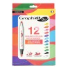Set de 12 marqueurs acryliques à double-pointe Graphit'Go. Prêt à l'emploi, il sont sans amorçage et adhèrent sur un grand nombre de surface (papier, bois, métal verre, tissu...) Disponibles à l'unité en 60 couleurs.