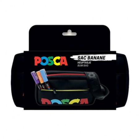 Ce sac banane en tissu noir est parfait pour ranger et transporter ses feutres Posca. Avec son grand espace de rangement, sa poche avant zippée et sa ceinture clip ajustable, vous pouvez créer partout facilement. L'intérieur se compose d'une poche filet et d'une poche plate, ce qui vous permet d'avoir un visuel direct sur tous vos marqueurs et feutres.