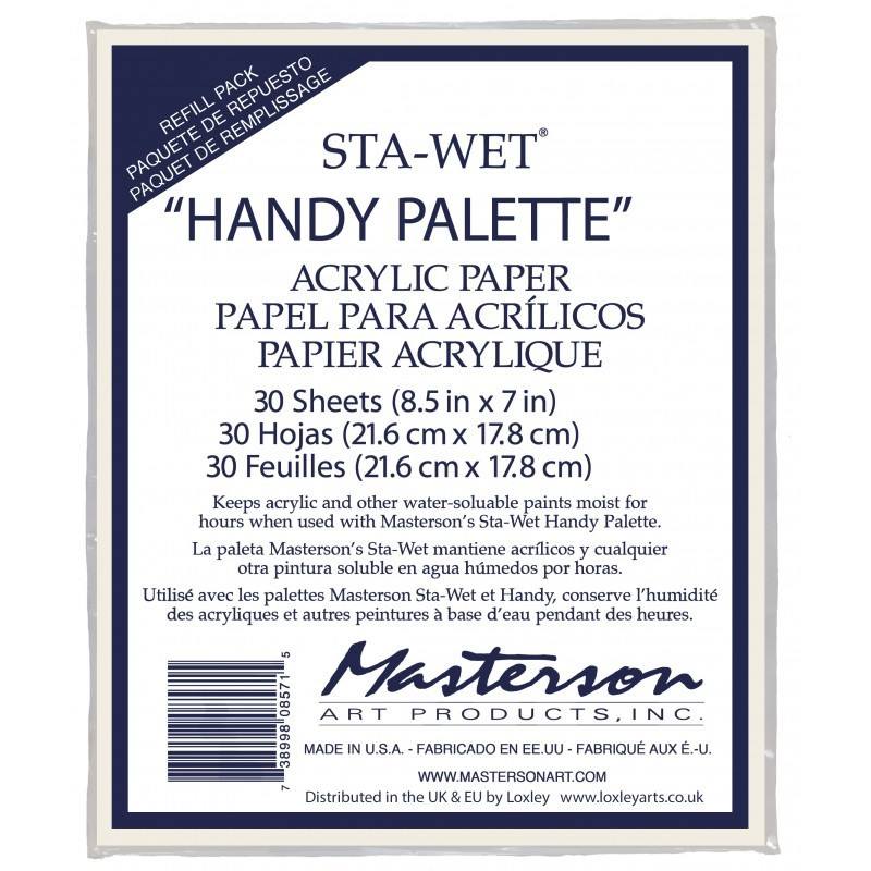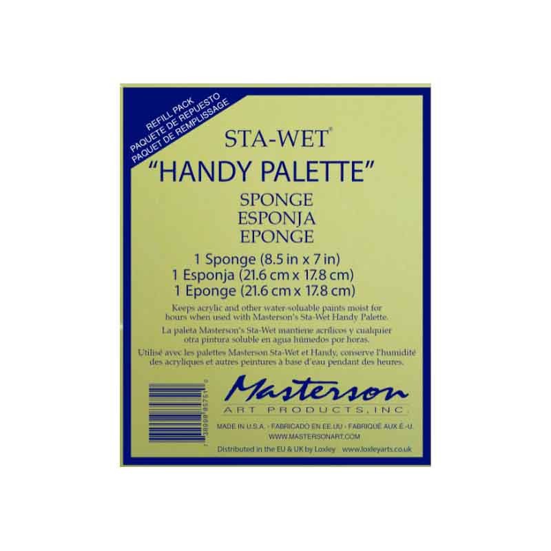 Eponge et lot de 30 feuilles de papier palette de rechange pour la palette humide Stay-Wet 18x21.5 cm de Marterson. L'éponge permet de créer une réserve d'humidité dans la palette Stay-Wet et la feuilles de papier palette de conserver les couleurs de peinture. Produit au choix.