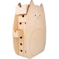 Calendrier de l'Avent en forme de Chat en bois naturel non vernis FSC comportant 24 tiroirs sur le côté à remplir de surprises telles que des bonbons, chocolats et autres friandises en attendant Noël. Dimensions du calendrier : 40x28.5x12 cm