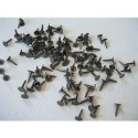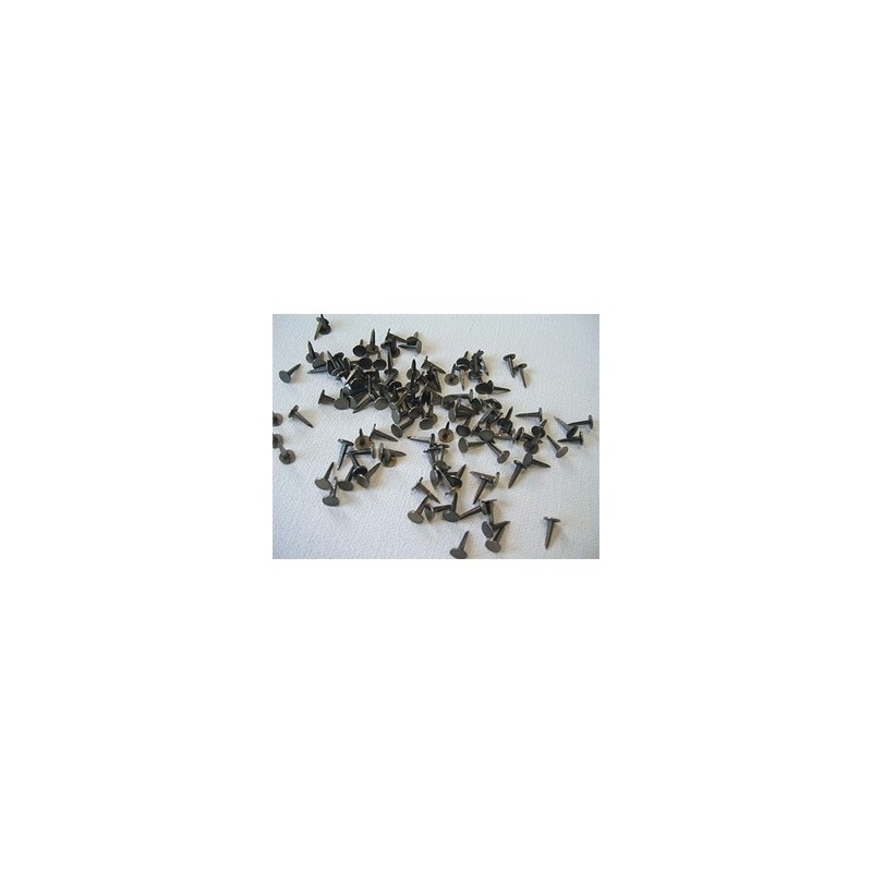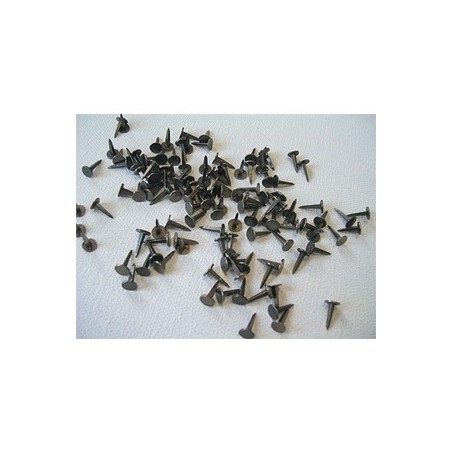 Semences pour tendre les toiles sur les châssis de peintres. Semences évidées et calibrées de longueur 11mm et de diamètre de tête 6.2mm. En acier doux bleui. Les semences servent à fixer et maintenir la toile sur le champ du châssis à peindre. La pointe extra-piquante permet une pose manuelle aisée. Vendues en sachet de 100 g (soit environ 280 clous).