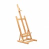 Chevalet de table fabriqué en hêtre huilé avec hauteur et inclinaison réglables. Parfait pour peindre et présenter des petits et moyens formats jusqu'à 73 cm. Structure au sol en forme de H pour une parfaite stabilité, flèche centrale avec tablette, inclinable et réglable en hauteur munie d'un sabot pour maintenir la toile. Superficie au sol : 34x33 cm, hauteur totale : de 88 à 120 cm, poids : 2.7 kg.
