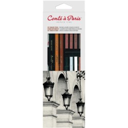 Le set Esquisse & Etude de Conté à Paris garantit une large variété de techniques et effets possibles pour les esquisses et l'étude. Un assortiment unique et traditionnel pour dessiner. Le set Esquiise & Etude éConté à Paris contient : 12 carrés Conté à Paris : Sanguine, bistre / Sanguine Médicis / Sanguine Watteau / Sanguine XVIII / Bistre / Gris / Blanc / Noir HB / Noir B / Noir 2B, 3 crayons Conté à Paris : 1 Crayon sanguine / 1 Crayon pierre noir 3B / 1 Crayon blanc , 1 gomme mie de pain, 1 tortillon et 1 estompe de 5 mm.