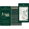 Boite en métal avec un assortiment de 12 crayons graphite Castell 9000 de Faber Castell. Disponible en 2 assortiments. Le crayon Castell 9000 est un crayon graphite de très haute qualité fabriqué à partir d'un mélange d'argile et de graphite sélectionnés.