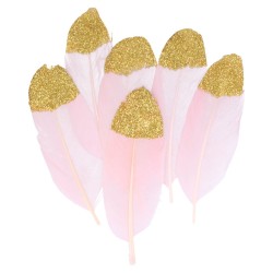 Lot de 6 plumes roses avec paillettes dorées de la collection "Lovely Swan" de Artemio.
