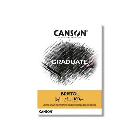 Bloc papier Graduate Bristol de Canson pour l'utilisation du crayon graphite, du crayon de couleur et du feutre. Il possède une bonne résistance au gommage. Les 20 feuilles que contiennent ces blocs sont collées sur un côté et se déclinent en 3 formats : A5 (14.8x21 cm), A4 (21x29.7 cm) et A3 (29.7x42 cm). Fabriqué en France , certifiée FSC et garanti sans acide.