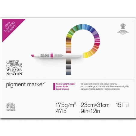 Bloc de papier Winsor Newton de 175 g/m², collé 1 côté, spécial pour marqueurs à base alcool tels que le Pigment Marker, le ProMarker ou encore le Graph'It. La surface permet le mélange et une application aisée de la couleur. Fabrication sans acide et de qualité archive. Le grammage épais de 175 g/m² permet une présantation idéale des oeuvres. Blocs disponibles en formats A4 et A3.