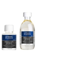 L'essence d'aspic est un excellent solvant liquide incolore naturel d'origine végétale. Elle est obtenue par distillation de la lavande dont l'odeur forte se situe entre celle de l'essence de lavande et celle de romarin. Grâce à son évaporation lente, l'essence d'aspic est idéale pour le travail du glacis. Flaocn de 75 ml et 250 ml.