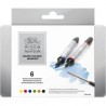 Le coffret de marqueurs aquarelle Professionnelle Winsor & Newton contient 6 marqueurs aquarellables à deux pointes. Couleurs contenues dans le coffret : Jaune de Cadmium, Alizarine Cramoisie, Bleu de Prusse, Vert de Vessie, Ocre Jaune et Noir d'Ivoire. Caractéristiques des marqueurs aquarelle Professionnelle Winsor & Newton Grâce à leur double pointe très étudiée, le peintre maîtrise parfaitement l'application pour un résultat d’une précision exceptionnelle. Une pointe fine et une pointe pinceau flexible, parfaites pour réaliser des lignes de différentes épaisseurs et des détails délicats. Les couleurs se diluent parfaitement à l'eau pour créer des lavis subtils et profonds. « Grâce à l'intensité des pigments, on peut obtenir une gamme de tons intéressante après ajout d'eau. Ces marqueurs sont parfaits pour faire des esquisses et travailler des illustrations. » Stephanie Newell-Price, peintre Une formule spéciale a été développée avec des pigments haut de gamme. Ils se mélangent et s'appliquent facilement, et leurs teintes sont éclatantes. Ils offrent également une excellente permanence et une durabilité très supérieure à celle des produits à base de pigments équivalents. « Avec ces marqueurs, j'ai retrouvé tout le plaisir que j'avais à dessiner, enfant. Les couleurs sont profondes et s'appliquent facilement. » Ben Cockett Les marqueurs d'aquarelle Winsor & Newton sont disponibles dans une gamme très équilibrée de 36 couleurs profondes. Tous sont miscible avec l'Aquarelles et les médiums traditionnels Winsor & Newton. Pour obtenir des résultats parfaits, associez-les au nouveau papier spécialement conçu pour les marqueurs d'aquarelle.