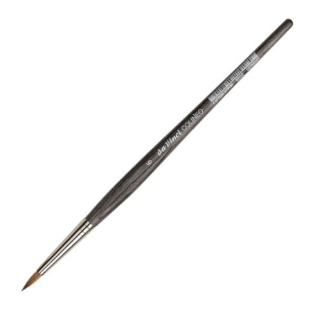 Pinceau repique Colinéo Da Vinci série 5526 en fibres synthétiques de martre de Kolinsky pour une utilisation en aquarelle, gouache et encre. Le pinceau repique permet le traçage de lignes, de détails très fins et minutieux ainsi que la réalisation de détails généraux et de finitions.