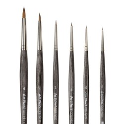 Pinceau aquarelle repique Colinéo Da Vinci série 5526 : Un mélange soigneusement équilibré de différentes longueurs de fibres synthétiques droites et ondulées, avec des pointes extra fines et précises, une nervosité extraordinaire et une rétention capillaire extrêmement haute. Fruit d'un travail depuis de nombreuses années afin d'imiter les qualités si particulières de la martre rouge Kolinsky de Sibérie. La série 5526 de pinceaux Colinéo repiques se compose de 6 tailles : n°5/0, n°3/0, n°0, n°2, n°4 et n°6.