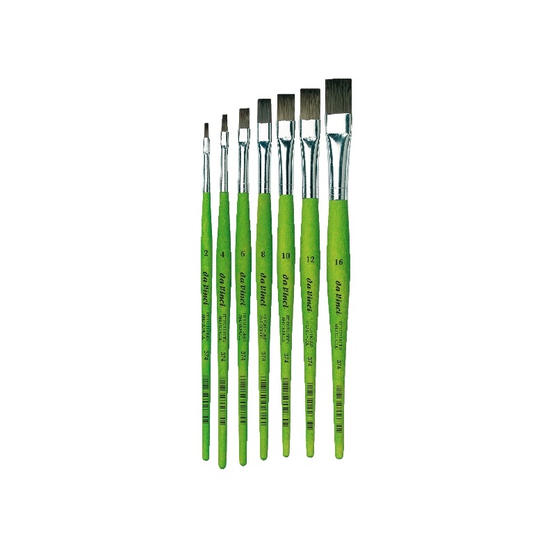 Le pinceau plat "Fit" série 374 de Da Vinci possède une nouvelle fibre polyvalente et souple, disponible en 9 tailles. La qualité de ce pinceau permet une utilisation aussi bien pour les Beaux-Arts que les loisirs créatifs et l'école à un prix très attractif. Fabrication allemande avec virole aluminium sans soudure et mache vert mat.