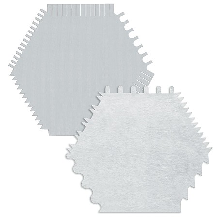 Le peigne à peinture se présente sous la forme d'une lame robuste et rigide à la souplesse parfaite pour les techniques de grattage (‘scraping’), mais également pour faire des mélanges ou réaliser des structures en peinture, gel, pâte à modeler et autres matériaux de consistance pâteuse. Également parfait pour l’application de peinture et de gels en couches superposées. 2 modèles au choix.