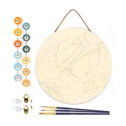 Niveau de difficulté : Facile Ce kit comprend : Disque en bois numéroté : Un disque de bois de 30cm de diamètre, pré-numéroté pour faciliter la peinture, avec une corde de suspension murale pour un affichage facile. - Pots de peinture acrylique : Des pots de peinture acrylique de haute qualité numérotés individuellement, conçus pour offrir une couleur riche et durable. - Pinceaux en nylon : 3 pinceaux de marque Figured'Art de tailles variées, conçus pour les traits détaillés et larges. - Image guide miniature : Un guide pratique présentant le résultat final avec une liste détaillée des couleurs, vous aidant à peindre en toute confiance.
