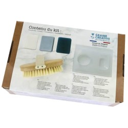 L'Atelier savons bien être vous propose de créer vos propres savons grâce à ce kit complet. Il contient 300gr de savon de 3 couleurs: blanc, gris opaque et gris transparent, 2 moules ,1 brosse de massage en bois et un livret d'explications illustré. Très facile d'emploi avec la technique du "melt & pour", amusez-vous à créer des motifs différents en mixant les couleurs.